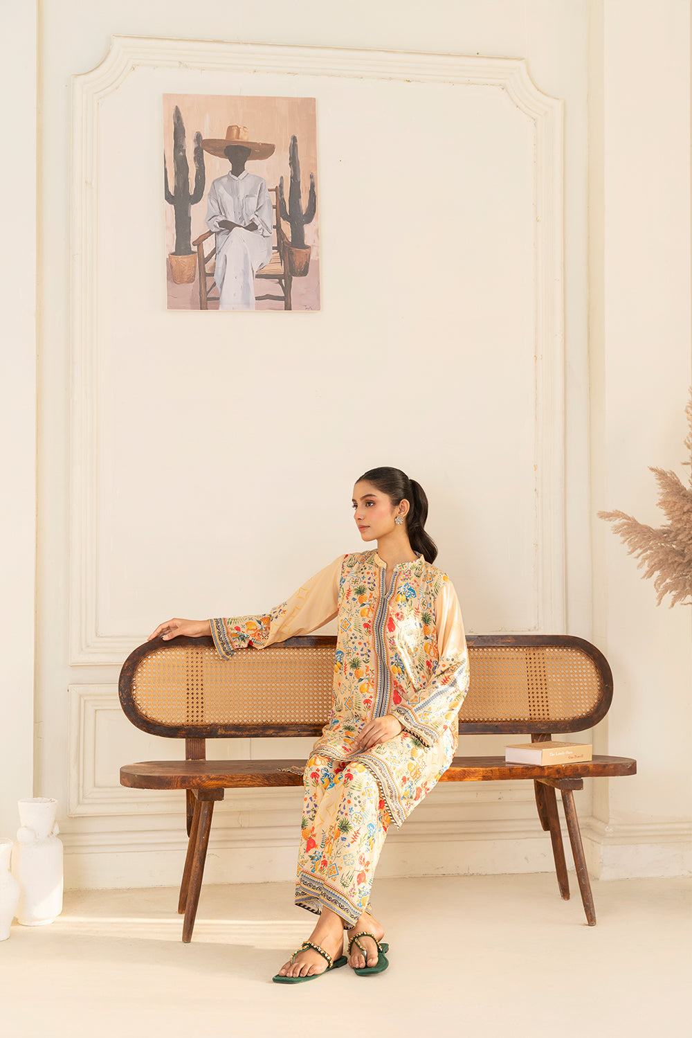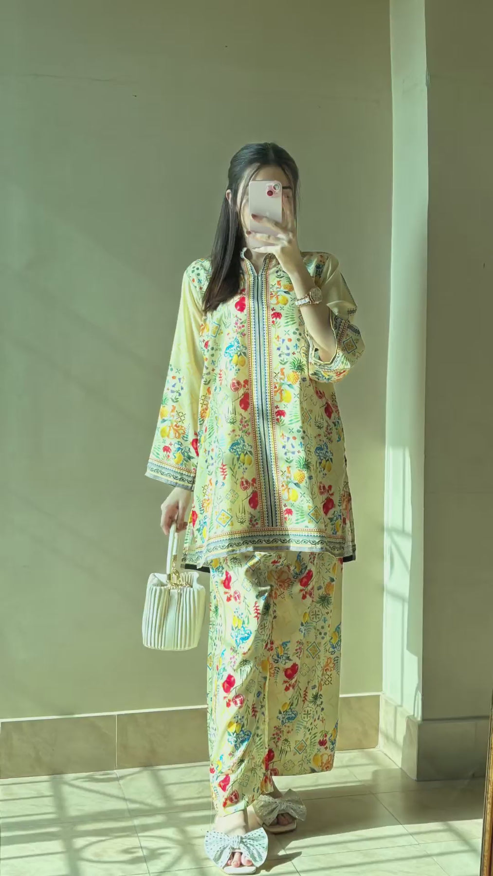 This 2PC printed cambric fabric suit is perfect for the summer season. It offers a comfortable fit, while the vibrant print adds a touch of style. Stay cool and fashionable all summer long with this must-have suit.